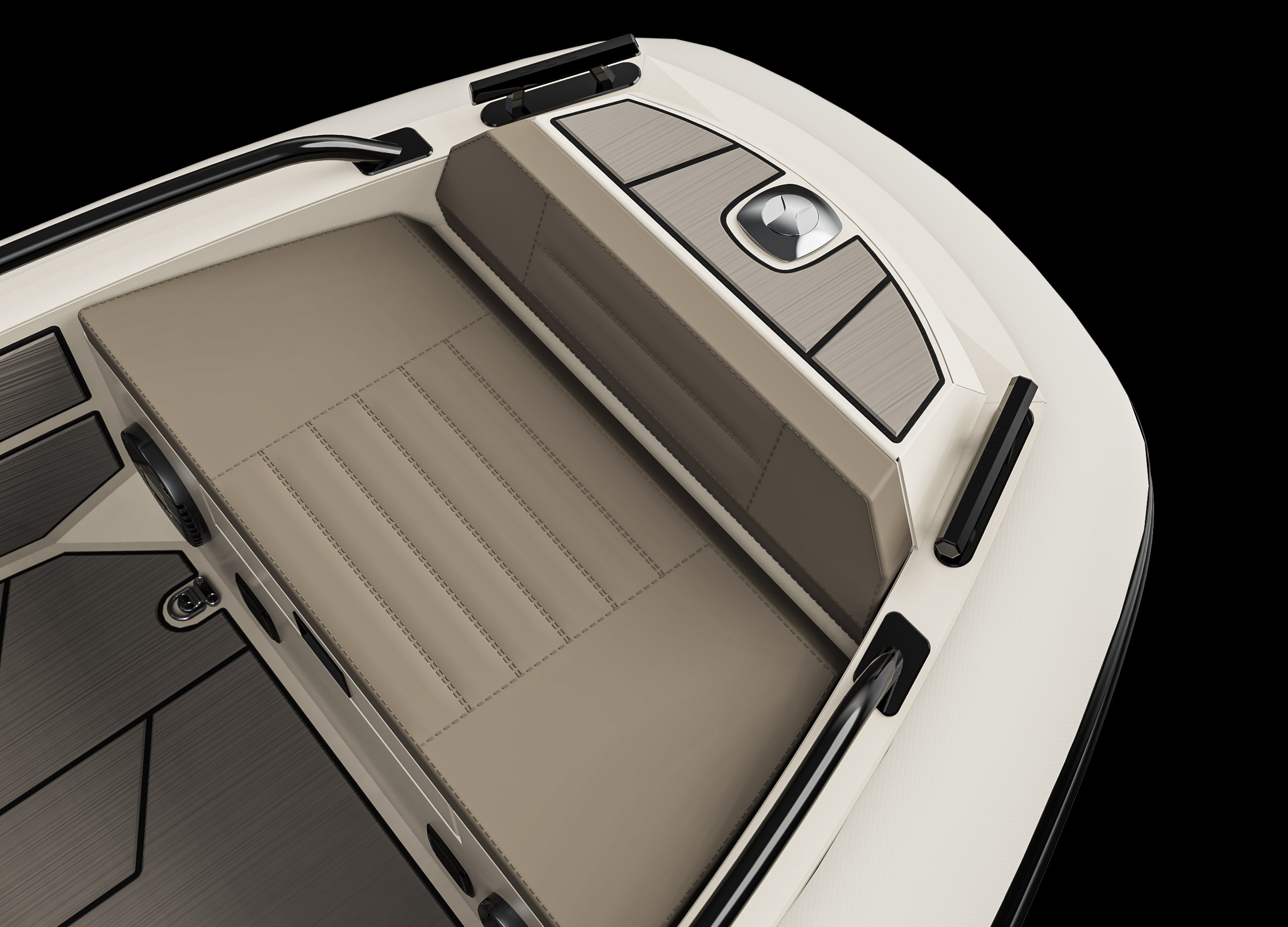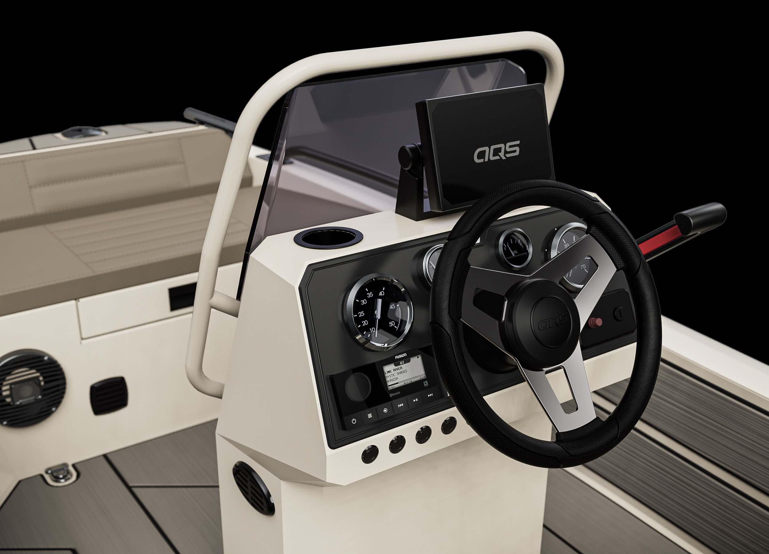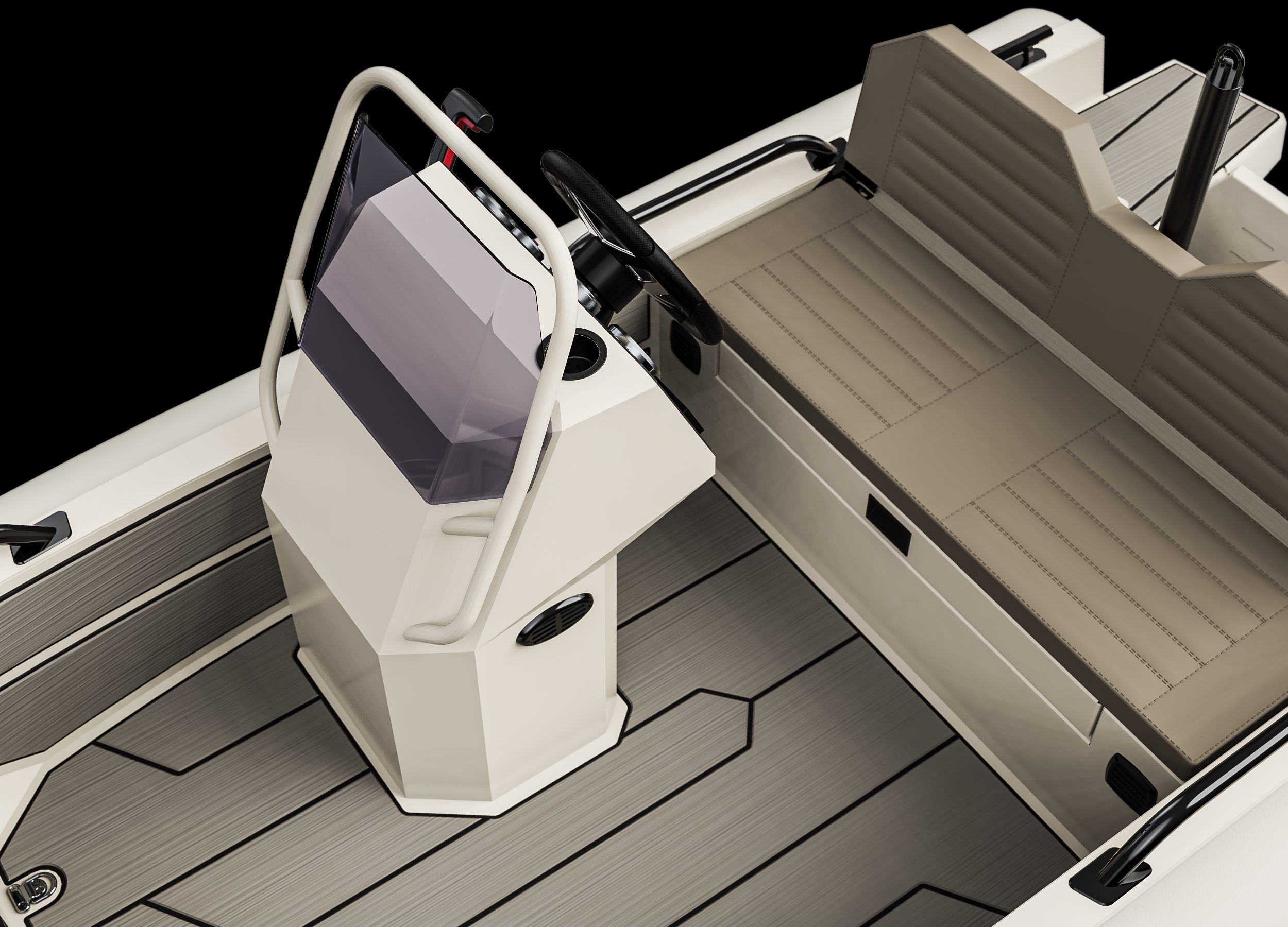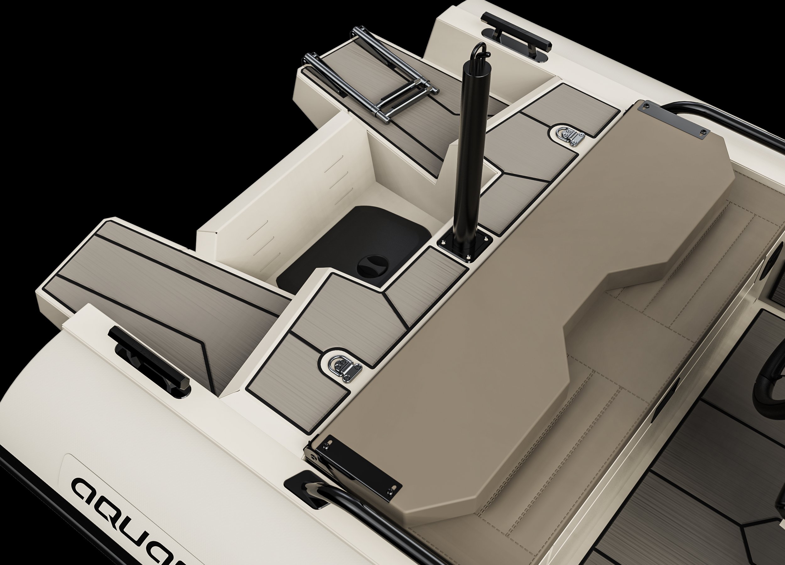 The Aquaspirit S370 is a fast and agile tender with a unique design. This boat combines compact external dimensions with an impressive 1.20 m-wide cockpit, comfortably accommodating up to four people. It comes equipped with a console featuring a windscreen, perimeter handrails, and plenty of storage space for personal belongings.
